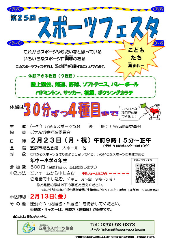 2月23日(祝・月)にスポーツフェスタを開催します。